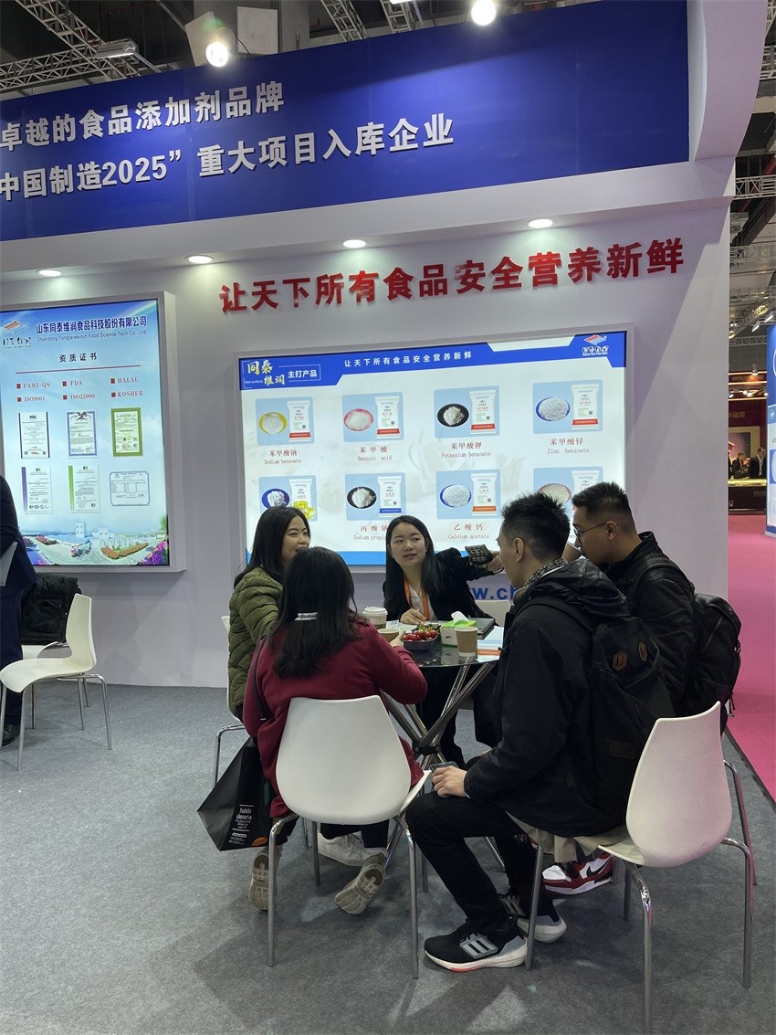 FIC盛會(huì)開展首日, 展廳內(nèi)人頭攢動(dòng)、十分熱鬧,同泰維潤攜主打產(chǎn)品苯甲酸鈉、苯甲酸、丙酸鈣、丙酸鈉、乙酸鈣、乙酸鈉等多款產(chǎn)品亮相此次展會(huì),眾多新老客戶及國外友人到我公司展區(qū)洽談咨詢。對(duì)客戶提出的產(chǎn)品應(yīng)用與問題進(jìn)行全方位的解答,專業(yè)的團(tuán)隊(duì)為客戶提供更加專業(yè)的解決方案!