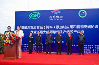 同泰維潤(rùn)公司二零一七年被國(guó)家工業(yè)和信息化部納入“中國(guó)制造2025重大項(xiàng)目庫(kù)入庫(kù)企業(yè)”,同泰維潤(rùn)牌丙酸鈣、丙酸鈉產(chǎn)量占據(jù)全世界產(chǎn)量的五分之一,完全達(dá)到規(guī)?;?、智能化、系統(tǒng)化生產(chǎn),同泰維潤(rùn)公司愿為中國(guó)食品安全,乃至世界食品安全做出積極貢獻(xiàn),“讓天下所有食品安全營(yíng)養(yǎng)新鮮”是同泰維潤(rùn)家人共同的使命。