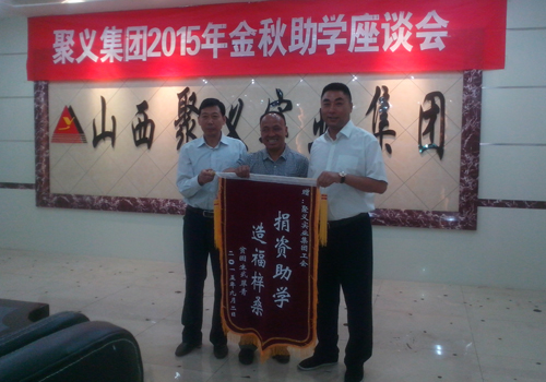 捐資助學(xué) 造福梓桑 -------金秋助學(xué)受資助職工向集團(tuán)公司贈(zèng)送錦旗